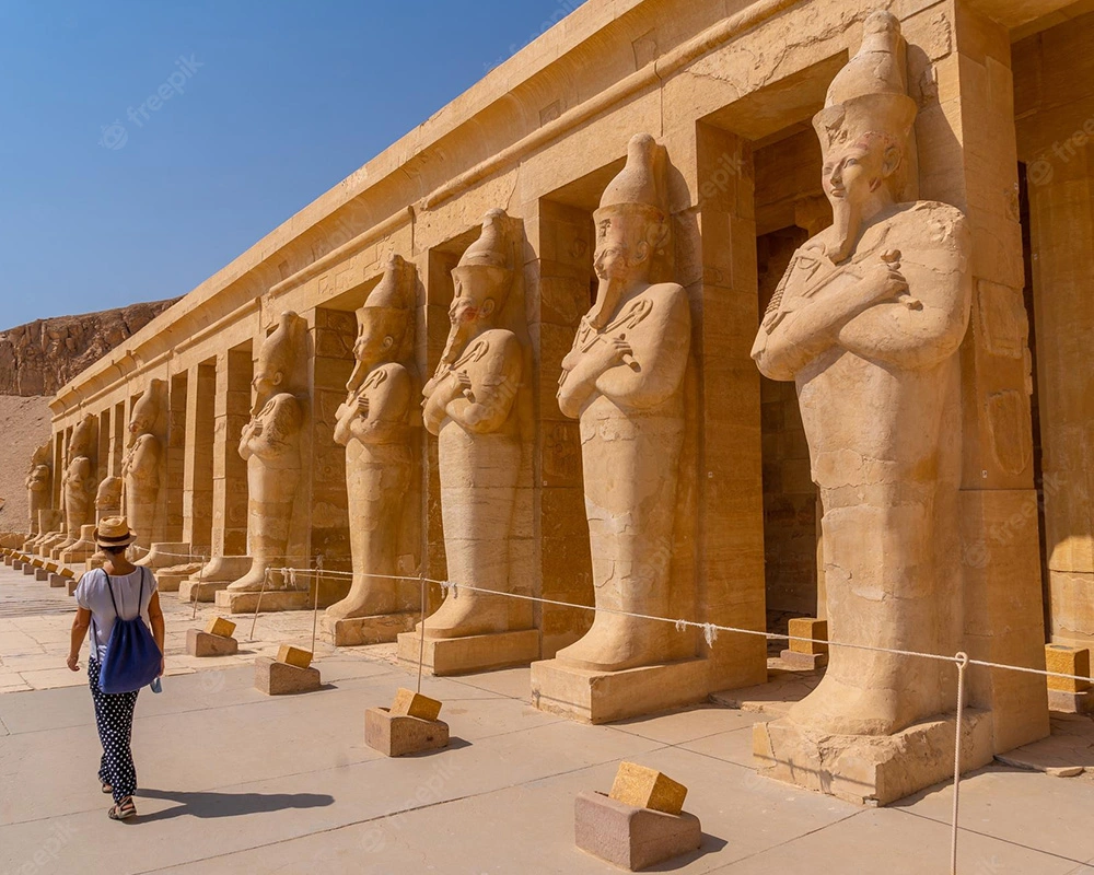 Por la mañana cruzar a la Orilla Occidental del Nilo, visita a la Necrópolis de Tebas:- Valle de los reyes, templo de la Reina Hatshepsut  y los colosos de Memnon.  Tarde libre.