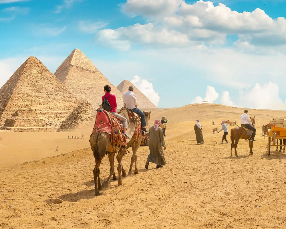 Las pirámides: en la necrópolis de Guiza, son la gran portada de Egipto. Siempre saltan a la mente cada vez que se mencione el nombre de este país. La visita a las pirámides consiste en hacer tres paradas: