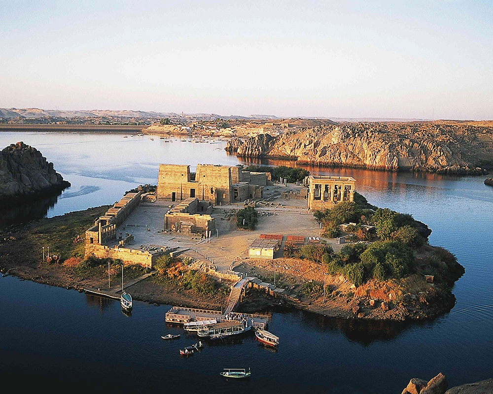 Llegada, asistencia y traslado al muelle, Embarque y visita al templo de Philae y la Alta Presa de Aswan.