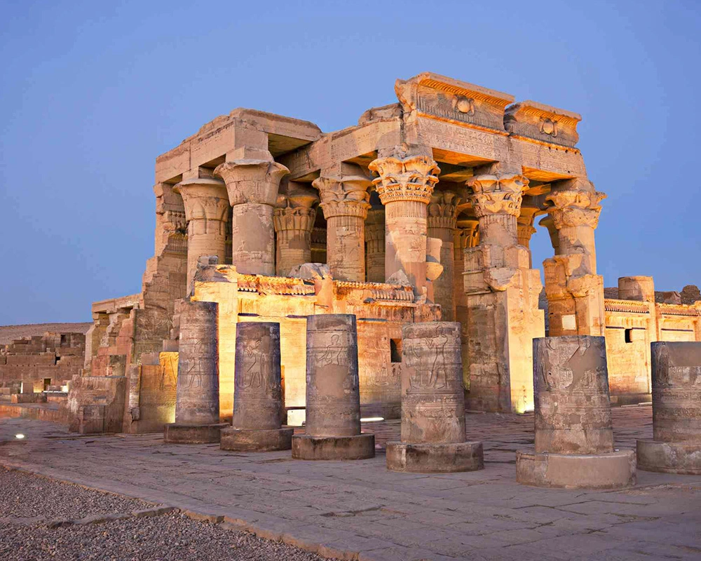 Comida y inicio de navegación a Kom Ombo. Visita al Templo dedicado a los Dioses Sobek y Haroeris. Navegación a Edfu. Cena y noche abordo en Edfu.